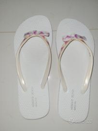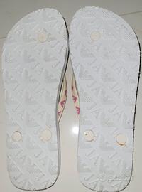 Infradito Armani n.37 bianche con logo rosa. Usate un paio di volte. Con suola praticamente nuova come da foto. Vendo causa inutilizzo.