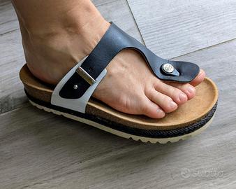 Sandalo con design casual-chic, suola EVA leggera con inserto in corda. Plantare Bioprint ergonomico in sughero e gomma