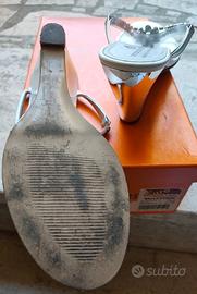 Infradito con tacco a zeppa di 8 cm numero 36 Bianche ed argento con strass e piccole pietre Indossate una sola volta per cerimonia Valle Verde