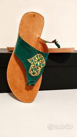 Infradito bassa hand made. Cuoio dipinto a mano con ricreata la "Mano di Fatima". Spese di spedizione a carico dell'acquirente previo pagamento.