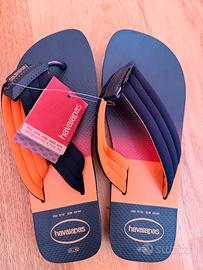 Infradito Havaianas ciabatte nuove con cartellino Misure Havaianas: 41-42 Eur: 43-44 USA 9/10 Materiale: -Strip: 100% Polyamide + Flag: 100% PVC + -Line: Polyamide + Twing: 100% PVC +-Buttons: 100% PVC. -Outsole: 100% Rubber + Silkscreen: 100% (Substrate, Paint, Resins and Labels) Sandali Havaianas Urban Print, comodi e resistenti, ideali per l’estate e il tempo libero. Design moderno con stampa urban e cinturino morbido che offre una calzata confortevole. #havaianas #summer #flipflops #sandali #beachwear #style