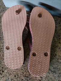 Ciabatte infradito originali marchio Havaianas, color rosa antico, glitterate (sulle fascette e sul profilo della suola). Numero 35-36.