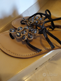 Infradito in vera pelle nere con pietre dure