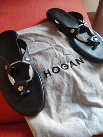 Infradito in pelle nera con inserti in metallo, suola in gomma misura 39