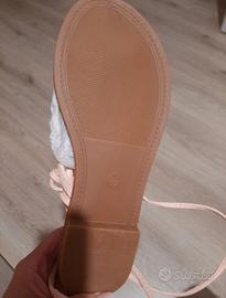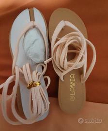 Vendo per terzi: ciabattine a infradito, color albicocca, basse, con lacci da legare alla schiava, a preferenza alla caviglia o fino al ginocchio. mai usate.