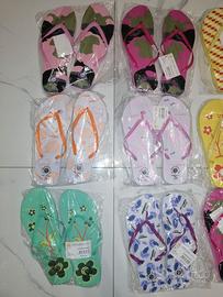 Vendo come da foto 13 paia di infradito in gomma con varie fantasie, acquistate e mai utilizzate. Vendo per cambio progetto. Saluti