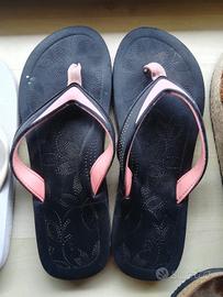 Infradito nero-rosa taglia 41 = 3 euro Infrandito bianco taglia 39 = 2 euro Pantofole taglia 38 = 2 euro Biomodex taglia 41 = 10 euro Sandali donna taglia 36 = 10 euro