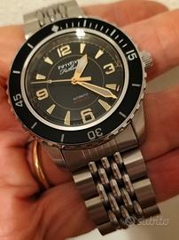 Vendo inserto ghiera in cristallo zaffiro per Seiko SNZH "Fifty Fathoms". L'inserto è nero in vetro zaffiro con luminescenza, è adatto a tutti i Seiko SNZH - 55-53-57, etc. Nella penultima foto si vede una prova sul mio orologio dove poi ho montato un altro inserto ghiera, nell'ultima foto una delle referenze su cui si può applicare. Non adatto ad altri Seiko o Citizen o Bulova, o Longines, o Certina, o Rolex, o Tudor, o Steinhart, o Borealis, o Vostok, o Tissot, etc. Ritiro a mano su Padova Vicenza Verona Rovigo, spedizione disponibile.