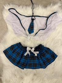 Set sexy Schoolgirl Cosplay Completo intimo sexy da studentessa per cosplay, composto da mini top e gonna a quadri