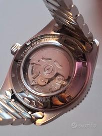 Movimento automatico Seiko NH35A, affidabile e con carica manuale e fermo macchina.