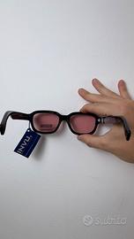 Montature moderna Invu, stanghette con dettaglio oro, possibilità di montare lenti oftalmiche in negozio con uno sconto del 50%.