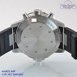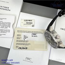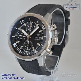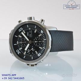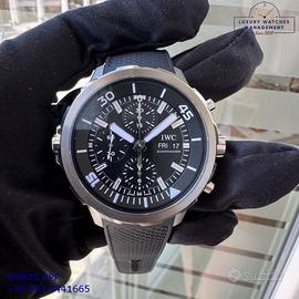 Per conoscere il prezzo e le caratteristiche tecniche dei nostri orologi visita il nostro sito ufficiale: https://lwmitalia.com/it Tutti i nostri orologi vengono verificati e revisionati dal nostro laboratorio specializzato “KeepTime Lab”: https://keeptimelab.com/it/ IWC cronografo Aquatimer da 44MM acciaio, anno di produzione 2017, ghiera bidirezionale acciaio, vetro zaffiro antiriflesso, quadrante colore nero con doppia data indici e sfere al luminova, movimento meccanico a carica automatica, cinturino in gomma colore nero con fibbia acciaio originale IWC. Orologio originale IWC in ogni sua parte, revisionato in ottime condizioni, segni di usura assenti o appena visibili, full set (scatola, accessori vari, garanzia card ufficiale IWC), garanzia/dichiarazione di vendita nostro negozio valida per 12 mesi.