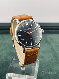IWC Automatic anni ‘60 con cassa in acciaio da 36mm, vetro plastica, corona originale marcata, quadrante nero e particolare lancetta dei secondi centrali di colore rosso.