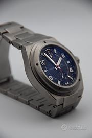 Albiwatch propone: Iwc Ingenieur Titanio Chrono Ref. IW372503 Cassa da 42.5 mm in titanio Bracciale integrato titanio Calibro automatico 79350 IWC Riserva di carica 44 ore Il movimento è ulteriormente protetto da una cassa interna in ferro dolce, che offre resistenza ai campi magnetici, segno distintivo della collezione Ingenieur. Sprovvisto di scatola e garanzia si rilascia certificato di autenticità e garanzia di 12 mesi sul corretto funzionamento. Scambi o permute con Tudor , Omega , Rolex