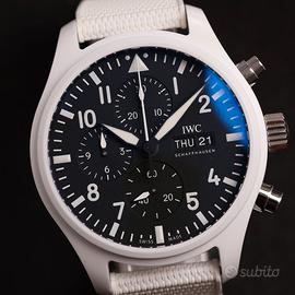 Negozio con sede fisica (nella Rep. di San Marino, si riceve solo su appuntamento) e sito internet vende: IWC Pilot Watch edizione limitata Top Gun, modello Lake Tahoe con cassa ceramica bianca e cinturino caucciù, modello grande da 44.5mm full set (scatola e garanzia IWC) anno 2022 in ottime condizioni. Referenza IW389105 Prezzo di listino 13'000€, nostro prezzo 8600€. Orologio assolutamente originale e ben mantenuto. Tutti i nostri orologi vengono consegnati con nostra garanzia 12 mesi. Per visionare altri orologi cercare il nostro sito: raimondi orologi. com IG: raimondi_orologi Per eventuale spedizione si gradisce un contatto diretto, possibilità di consegna di persona previo accordi.