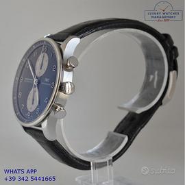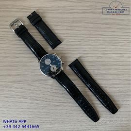 IWC Portoghese Panda cronografo acciaio, anno di produzione 2006, vetro zaffiro antiriflesso, quadrante colore nero a due contatori verticali e indici arabi, movimento meccanico a carica automatica, cinturino in pelle di alligatore opaco colore nero con chiusura fibbia acciaio originale IWC.