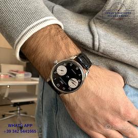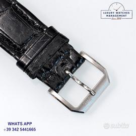 IWC Portoghese Panda con riserva di carica acciaio, anno di produzione 2004, vetro zaffiro antiriflesso, quadrante Panda colore nero a due contatori verticali colore argento con indici arabi e sfere a bastone, movimento meccanico a carica automatica, cinturino in alligatore colore nero con fibbia acciaio originale IWC.