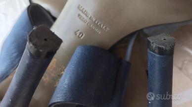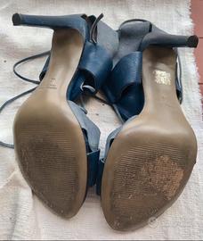 Ixos sandali esclusivi . tg 40 . Sandali che posso essere considerati nuovi. suole e tacchi nuovi -vedi foto- Tacchi a spillo altezza 9 cm . Pelle spazzolata e scamosciata blu e grigia con inserto in materiale plastico trasparente come foto. Suole in cuoio. Lacci alla caviglia sottili.