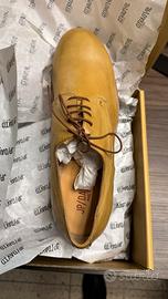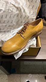 Eleganti scarpe derby da uomo in vera pelle di vitellino. Mai usate. - Materiale: vera pelle di vitellino. - Design stringato. - Colore giallo.