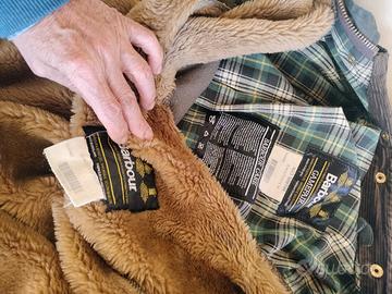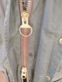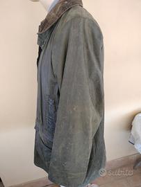 Stupenda Jacket Barbour Care Uomo TG C 42= XL= spalle basse cm 48- 50 colore cachi in tessuto cotone cerato collo a punta polso con elastico a scomparsa quattro tasche due chiusura clip, stilizzati dal Brend due a filetto interno foderato cotone tasca aperta allaccio per trapunta in tessuto lana acrilico estraibile chiusura totale zip doppio scorrevole clip tutto stilizzato dal Brend. Usato ma in buona condizione qualche con delle sfumature di colore la cera è un po consumata come noti dalle foto . Elegante di lusso originale Regno unito .