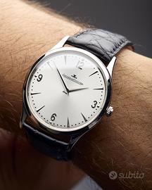 Jaeger Le Coultre master ultra thin 172.8.79.5 Peso: 47.01 Misura: misura polso 15/21 Anno: 2000 (circa) Corredo: Garanzia OroFirst 12 mesi, Scatola OroFirst Referenza: 172.8.79.5 Carica: Manuale Calibro: 849/3568103 Rubini: 19 Colore quadrante: Argento Corona: Acciaio Diametro cassa: 38mm Ghiera: Acciaio Materiale cassa: Acciaio Materiale cinturino: Pelle Vetro: Zaffiro Cod: 5705-a
