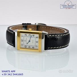 Per conoscere il prezzo e le caratteristiche tecniche dei nostri orologi visita il nostro sito ufficiale: https://lwmitalia.com/it Tutti i nostri orologi vengono verificati e revisionati dal nostro laboratorio specializzato “KeepTime Lab”: https://keeptimelab.com/it/ Jaeger Le-Coultre Reverso Classico acciaio e oro giallo 18KT, anno di produzione 2000, vetro zaffiro anti-riflesso, quadrante colore argento con indici arabi e sfere a bastone, movimento al quarzo batteria, cinturino in struzzo color nero con fibbia acciaio originale Jaeger LeCoultre. Orologio Jaeger LeCoultre originale in ogni particolare, revisionato in ottime condizioni, segni di usura assenti o poco visibili, scatola e accessori vari originale Jaeger Le-Coultre, garanzia/dichiarazione di vendita nostro negozio valida 12 mesi.