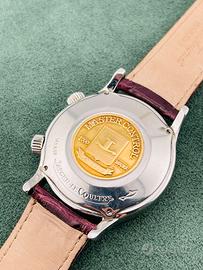 Orologio in ottime condizioni, viene fornito di cinturino in coccodrillo marrone/bordeaux con fibbia marcata Jager LeCoultre in acciaio.