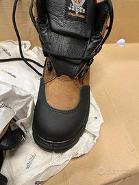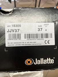 Calzature antinfortunistiche Jallatte in stile escursionistico per tutti i terreni, dal design originale, per affrontare situazioni imprevedibili e frequenti cambi di ambiente. Tomaio in pelle fiore impermeabile, finitura pull-up, spessore 1,9/2,1 mm. Puntale anti-abrasione in pelle. Colore marrone/nero.