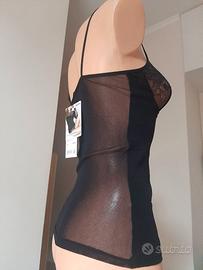 Janira - canotta intimo donna spalla stretta mod. Greta con pizzo col. Nero Disponibile Tg S e L