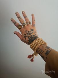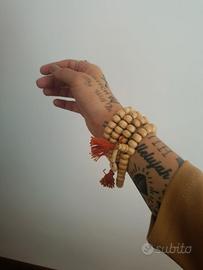 Collana nuova Japa Mala 108 grani per la meditazione e la recitazione di mantra in osso colore beige e arancione derivante dall'India