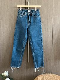 Jeans dritto a vita alta con tasche posteriori e frontali