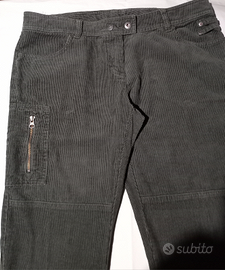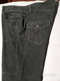 Jeans a vita bassa Benetton in velluto verde a coste. Cuciture al ginocchio piccola zip sul fronte e taschini classici al retro. Taglia 48. Vintage 2010 in perfette condizioni di conservazione, raramente indossati.