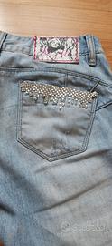 Bellissimi jeans firmati Silvian Heach in un lavaggio denim chiaro, con dettagli gioiello: Le tasche posteriori sono impreziosite da una cascata di strass e punti luce che donano un tocco di luce ad ogni movimento. Fit: Modello a vita bassa, molto femminile e aderente, che valorizza la figura.