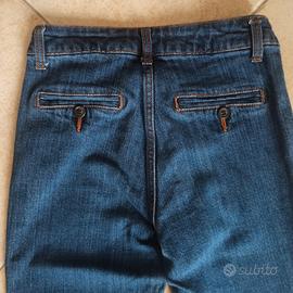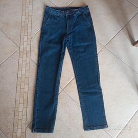 Vendo jeans a sigaretta elasticizzato tasca alla francese, spacchetto alla caviglia, lavaggio blu scuro.