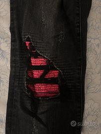 jeans amiri, taglia versatile, fit amiri, nero/grigio con toppe fucsia, condizioni perfette, prezzo trattabile.