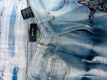 jeans amiri taglia 29 usati una volta solo per provarli, vendo per inutilizzo, colore celeste, nere e con stelle nere, prezzo trattabile, taglia italiana 42-44