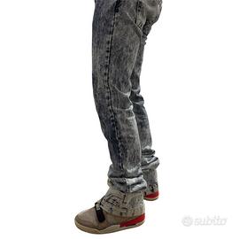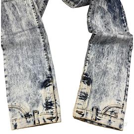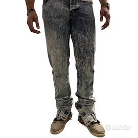 Jeans ANARCHY custom Made in Italy. Il fit è come si vede in foto. Sono alto 1.80m Jeans con lavaggio chiaro e scuro e dettagli sulla caviglia con bottoni regolabili. Tasche anteriori e posteriori. Fit molto ampio/oversize. Vita: 90cm Cavallo: 30cm Lunghezza: 130cm