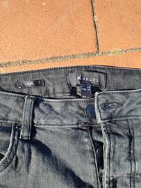 Vendo jeans della marca Angel, modello Slim Fit, in una bellissima tonalità grigio antracite con effetto lavato. Il denim è caratterizzato da dettagli distressed (strappi sulle ginocchia e piccole abrasioni localizzate) che gli conferiscono uno stile moderno e urban.
