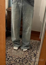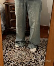 Jeans di zara dal taglio baggy quindi vestibilità ampia, in denim di cotone, Taglia EUR40/US31 che equivale ad una M italiana, perfetti per un look streetwear o casual. Il lavaggio è un azzurro chiaro leggermente sfumato (light wash), ideale per tutte le stagioni.