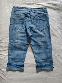 Jeans 5 tasche, tipo bermuda, elasticizzato, con risvolto e 3 bottoni laterali. Misure reali come da foto.