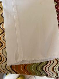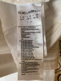 Vendo jeans Fiorella rubino bianco con bottone a gioiello modello skinny taglia 41, corrisponde una 48 ma veste molto meno l’unico difetto che l’etichetta sul dietro di pelle ha un po’ sbavato il colore come vedete nella foto caricata usati due o tre volte le misure sono