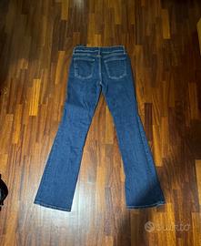 jeans blu scuro a vita bassa, ottime condizioni, vestono leggermente larghi sulle caviglie (modello a zampa). Taglia (eur) 38, ZARA. indossato poche volte. jeans abbastanza elastici