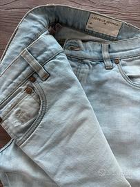 Lavorazioni e materiali di pregio incontrano il fascino intramontabile del denim nel pantalone cinque tasche iconic fit, realizzato in denim dall’effetto vintage. Il filato in puro cotone viene tessuto e lavorato per conferire al capo un peso minimo e una particolare finitura irregolare e vissuta. Il processo di tintura effettuata a capo finito conferisce alla nuance un aspetto lievemente disomogeneo e vissuto, in particolare lungo i bordi e le cuciture del capo. Prezzo in boutique, euro 970,00 circa. Prezzo subito, euro 69,00. Taglia 46 Stagione primavera/estate