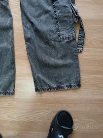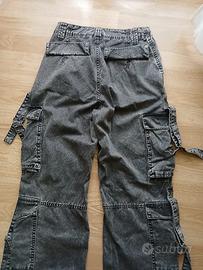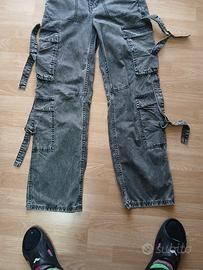 vendo jeans donna modello cargo, cerniera con bottone anteriore, tasche laterali superiori e sulle gambe, tasche posteriori, marca Bershka, taglia 34