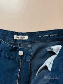 Jeans Carhartt WIP ‘W Curron Sk Pant’ con taglio Loose Tapered e dettagli e tasche workwear. Non ha difetti o segni di usura tranne una leggera macchia sul fondo poco visibile (foto 6). Taglia 26 / S / IT 40 / EU 36 Misure da steso : Vita 38 cm Gamba esterna 100 cm Gamba interna 73 cm Larghezza fondo 19 cm pierce denim workwear baggy loose fit regular single double knee carpenter jort cargo aviation pant 90s y2k y2kstyle y2kaesthetic skater boy girl style