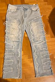 Jeans color chiaro con lavorazioni moderne sia davanti che dietro. Taglia L