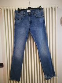Jeans uomo WRANGLER Greensboro Straight, colore bleu fever, elasticizzato, misura 33W/34L, come nuovo, vendesi causa acquisto taglia errata (larghezza fianchi cm. 44 circa, lunghezza cavallo cm. 82 circa.).