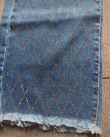 Jeans elasticizzati con micro brillantini sul davanti e tasche sul dietro.