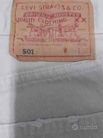 Jeans corti Levi's uomo colore panna/beige chiaro - Taglia 46 Jeans denim Levi's tagliati corti, colore panna neutro e super trendy. Modello con gamba dritta, orlo sfrangiato grezzo e piccoli dettagli distressed che danno un look casual-vintage perfetto per l'estate. Qualità Levi's originale.