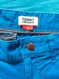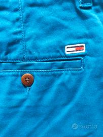Jeans shorts/pantaloncini in denim TOMMY HILFIGER. Larghezza vita: 42 cm Altezza: 51 cm Taglia: 30W Materiale: 98% cotone / 2% elastane Colore: blu Condizioni: ottime Vendo per inutilizzo